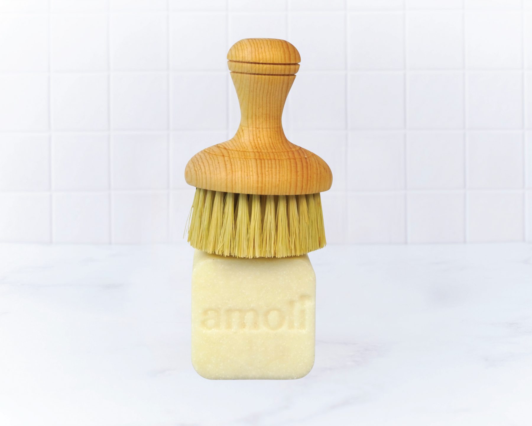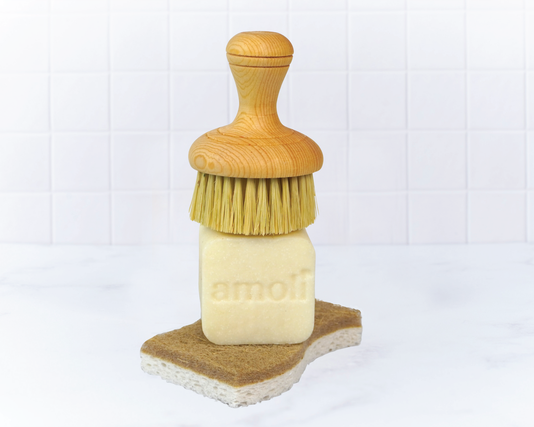 Humedece un cepillo, esponja o trapo limpio y frota el bloque de jabón hasta generar espuma. Lava platos, ollas o superficies como de costumbre y enjuaga con agua. Para mejores resultados, deja el bloque sobre un estante de madera para mantenerlo seco entre usos.
